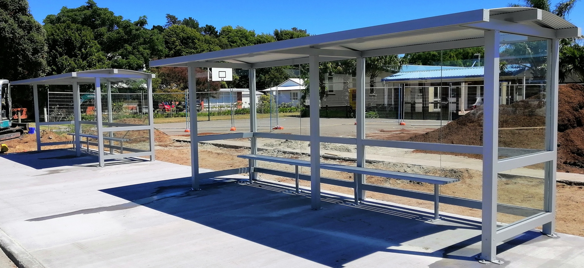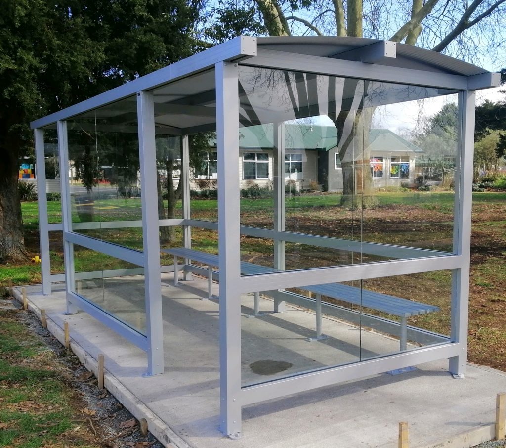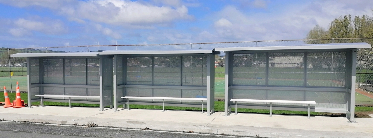2.4 with overhung 6 installed at Shirley boys Avondale Girls Christchurch SBAG Christchurch rebuild Matamata Primary 4.8 x 1.8 with front , colour Natural silverRolleston College Christchurch 4.8 with overhung roof Rolleston CollegeTatuanui School Waikato 4.8x 1.5 with front3x 3.6 Vandal Proof slimline shelters 4.8 with front Matamata College4.8 overhung shelters installed at Ashurst College4.8 overhung shelter installed Gisborne SchoolGisborne SchoolSouth Otago high school