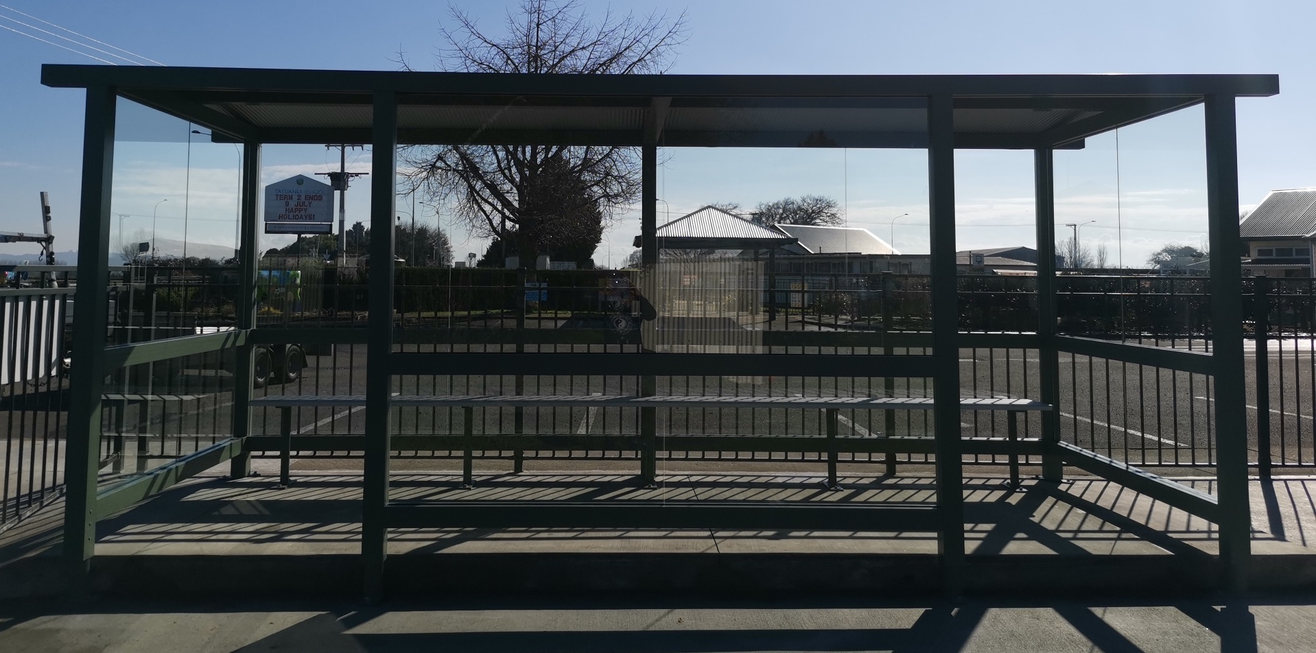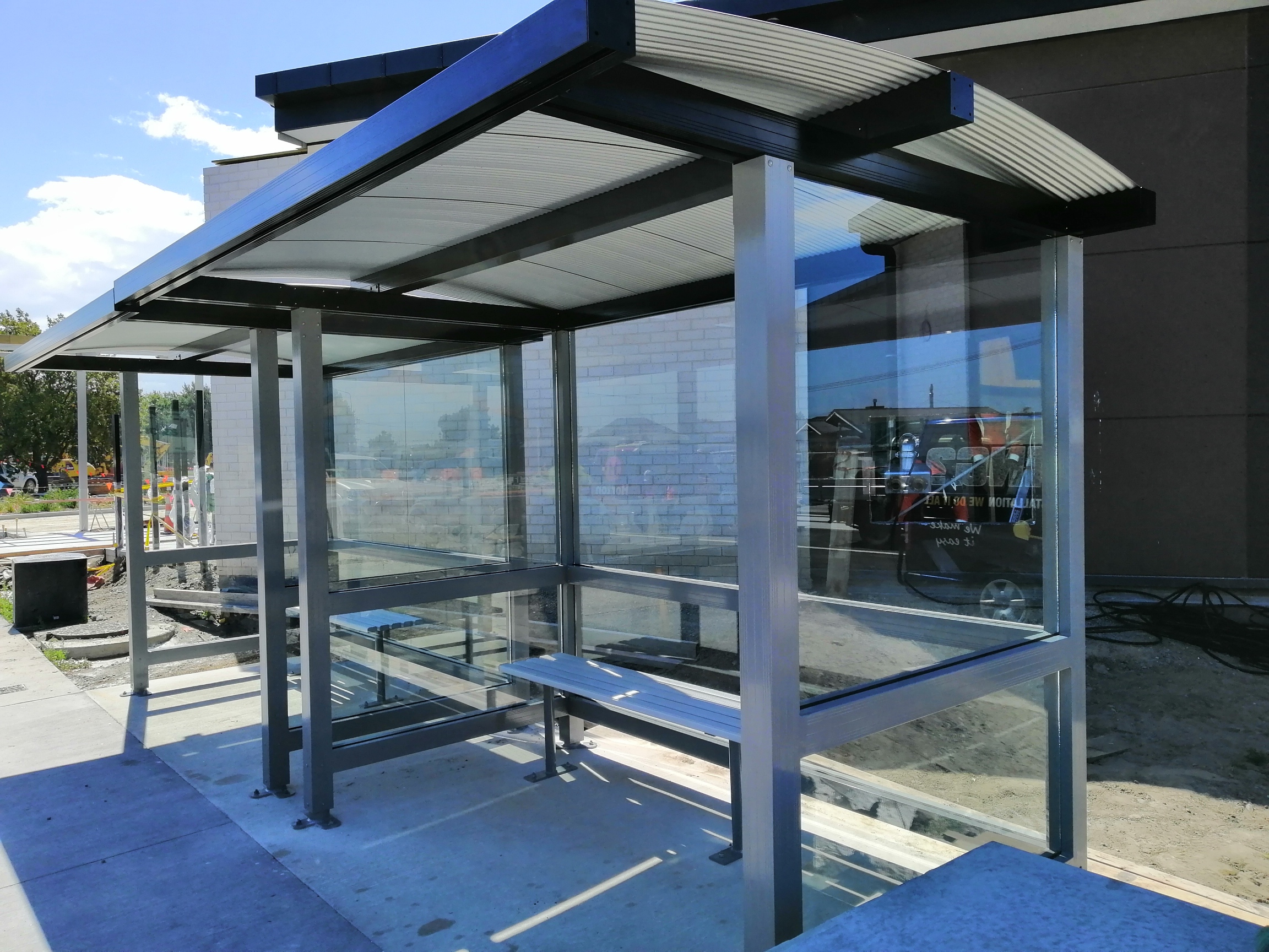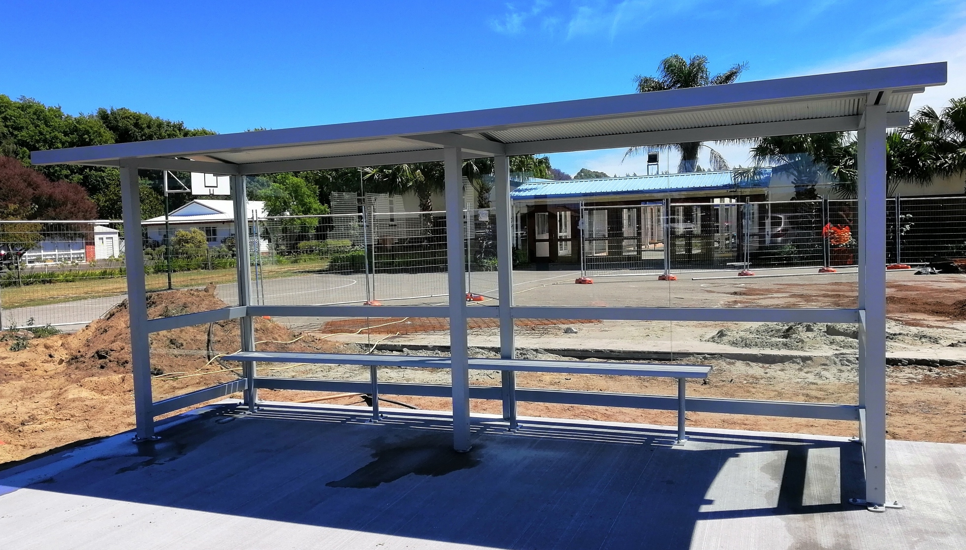 2.4 with overhung 6 installed at Shirley boys Avondale Girls Christchurch SBAG Christchurch rebuild Matamata Primary 4.8 x 1.8 with front , colour Natural silverRolleston College Christchurch 4.8 with overhung roof Rolleston CollegeTatuanui School Waikato 4.8x 1.5 with front3x 3.6 Vandal Proof slimline shelters 4.8 with front Matamata College4.8 overhung shelters installed at Ashurst College4.8 overhung shelter installed Gisborne SchoolGisborne SchoolSouth Otago high school